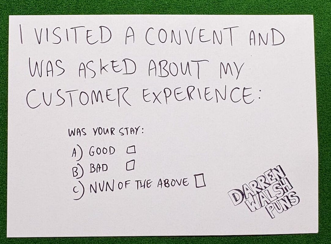 As a bonus, last week I went to see the comedian Darren Walsh touring in Colchester. He specialises in puns, and offered to create personalised puns for people. I gave him the topic of Customer Experience, and…